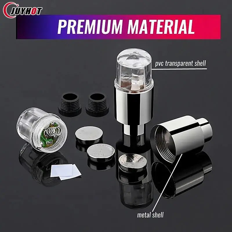 Dual-Sense LED Wheel Valve Light automatically lights up your wheels using vibration and light sensors, enhancing visibility and adding a colorful visual effect while you move.